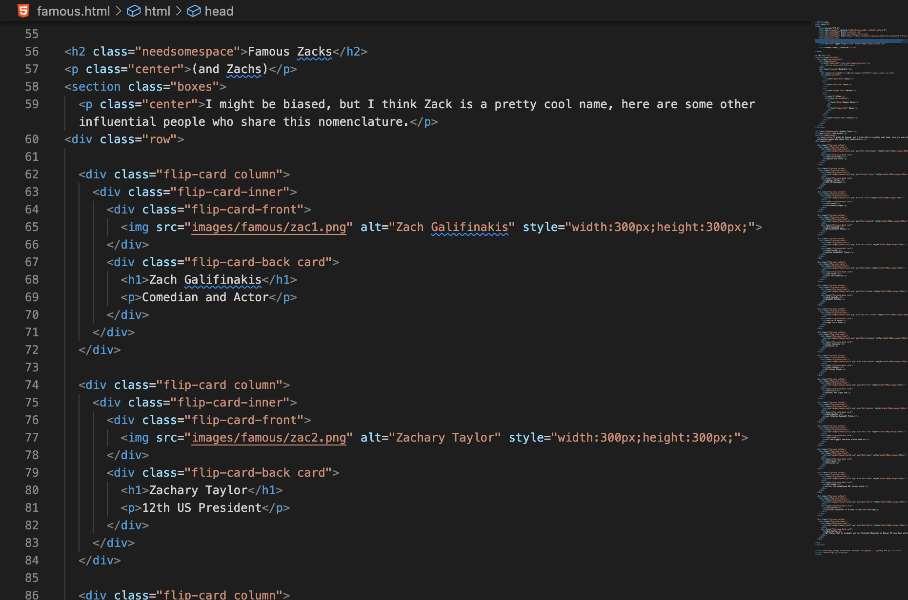 While I was trying to teach myself CSS I stumbled on to a website called W3 Schools. This website was extremely helpful in breaking down all of the CSS elements and how to use them. It also provided a few templates that I ended up using. I took one that I liked and modified it to follow an idea I had been thinking about for a while, which was to make a joke about me not being The Rock. After working on this site for a little while, I decided that it was not what I wanted and ended up moving on from it. The main reasons for this were because I had some other ideas I wanted to try, I wasn't really finding the Rock joke to be that funny anymore, and I felt too boxed in by the template design that I was using. This led me to the next design; Zacksite 3.0.